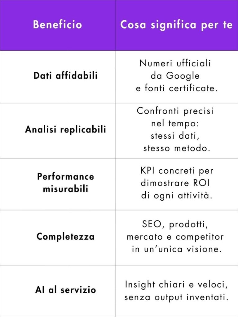 Per te significa avere consulenti che non si basano su intuizioni, ma su numeri solidi, sempre aggiornati e arricchiti da analisi predittive.