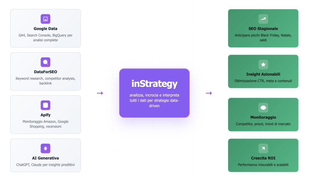 ✔ SEO stagionale: anticipiamo i picchi di ricerca (Black Friday, Natale, saldi) con cluster keyword predittivi.