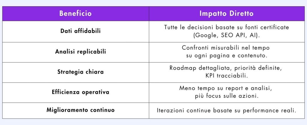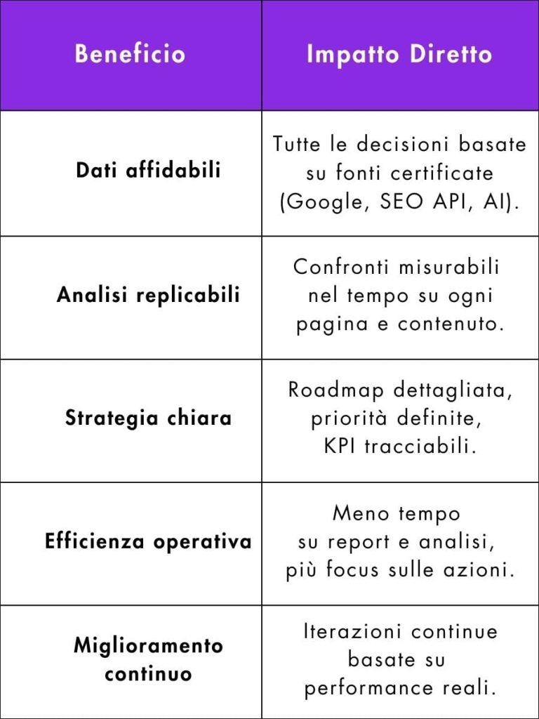 Trasforma i dati in decisioni: una strategia SEO scalabile che rende il traffico organico il tuo vero vantaggio competitivo.